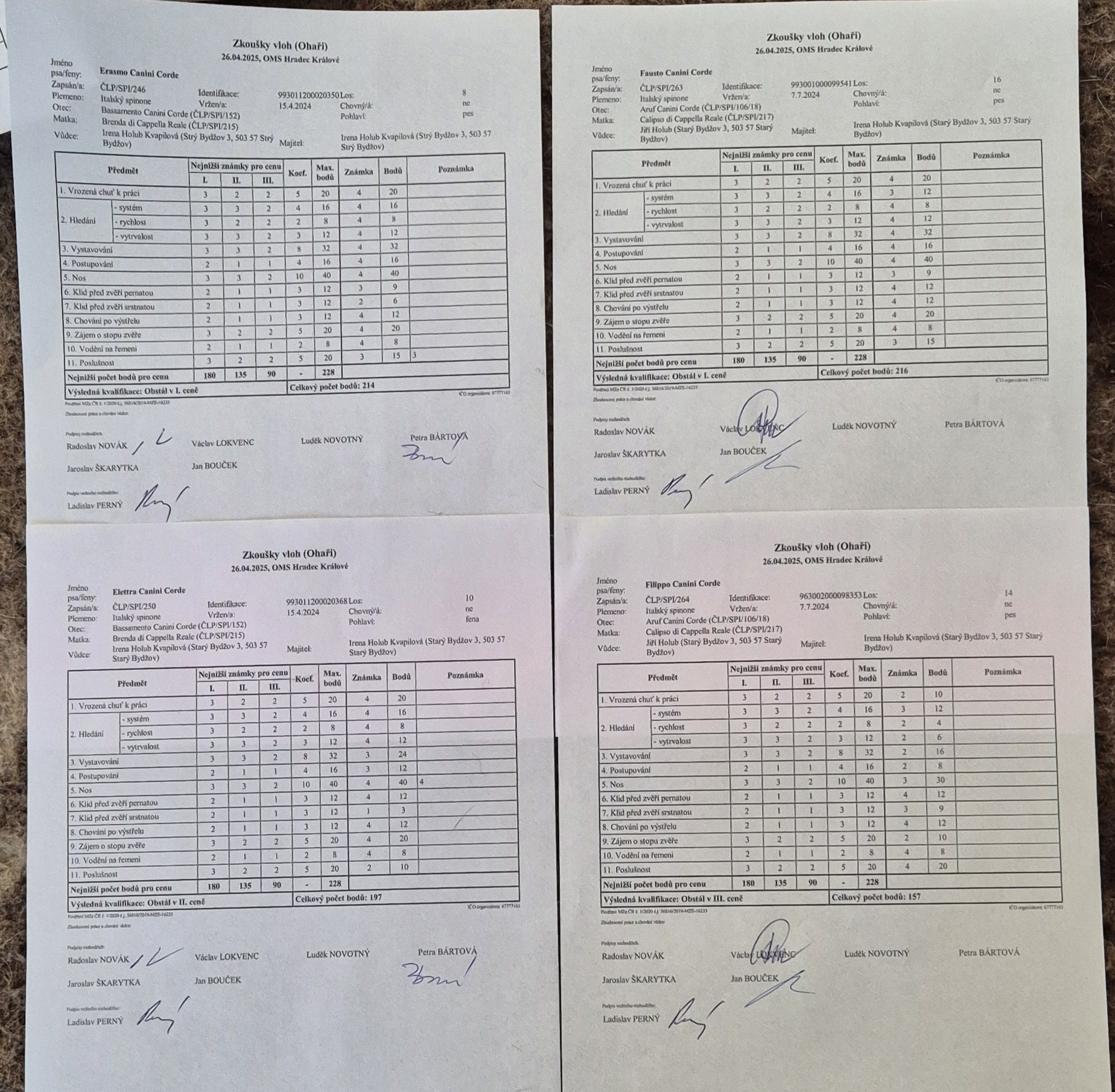 V patách mu byl Erasmo Canini Corde s 214 bodů a v I. ceně. Vůdce Irena Holub Kvapilová.