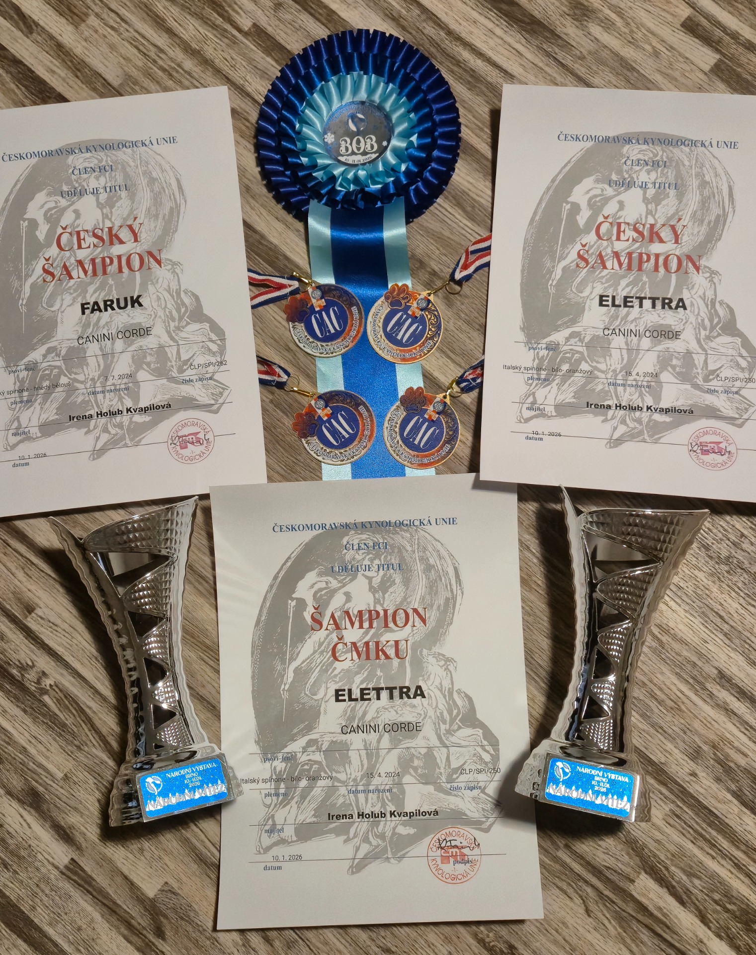Velká chovatelská radost a hrdost ze sobotního setkání čtyř sourozenců z pěti z vrhu E. Všichni obdrželi titul CAC. Moje velké díky patří jejich majitelům.