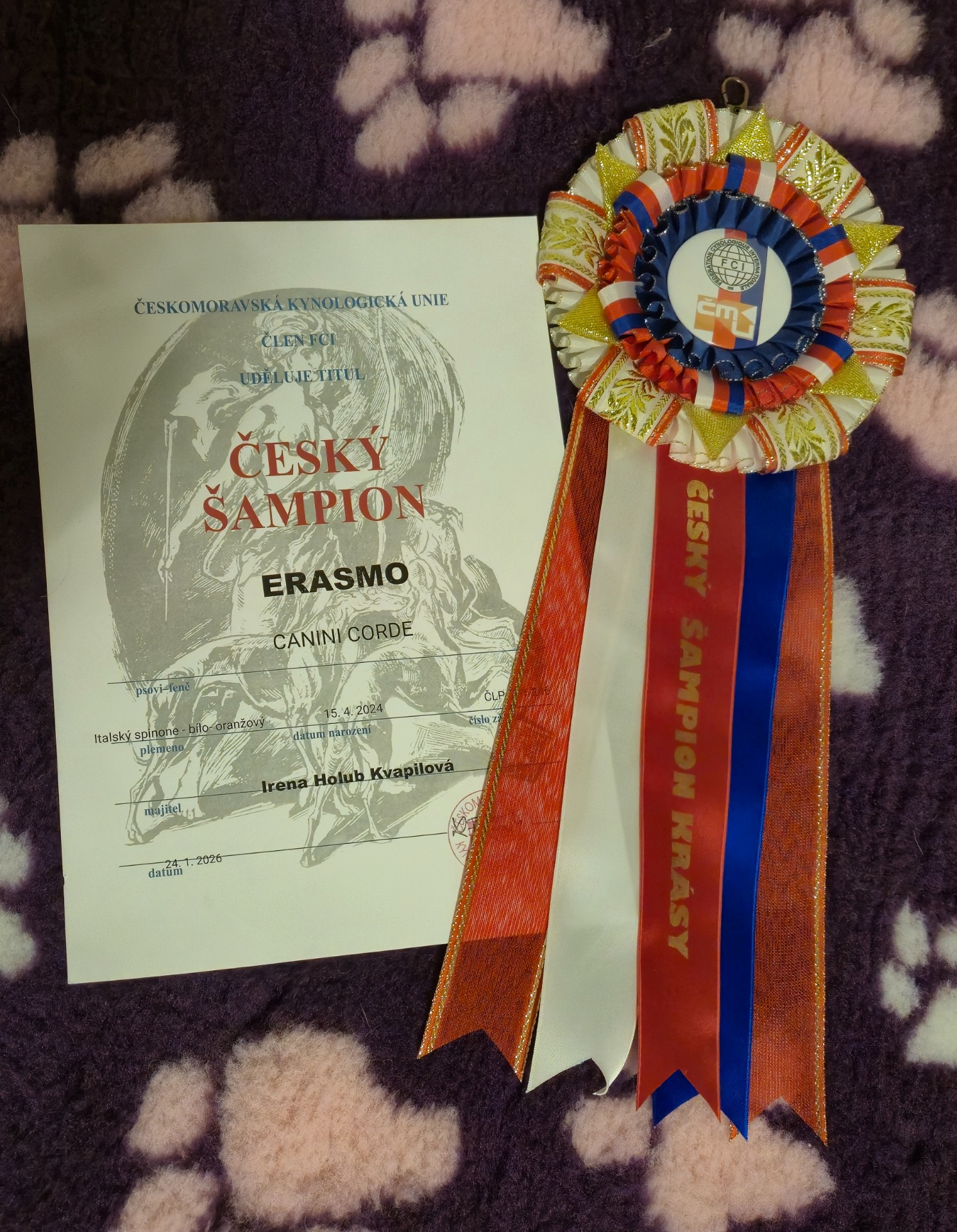 Erasmo Canini Corde V1 CAC nově ČESKÝ ŠAMPION